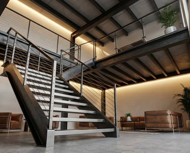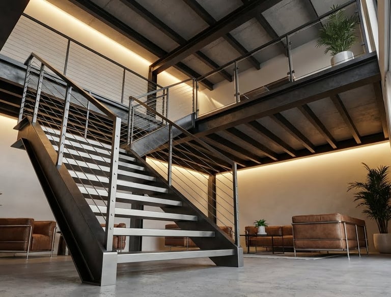 Fabricación de escaleras, barandas, portones industriales y entrepisos metálicos a medida.